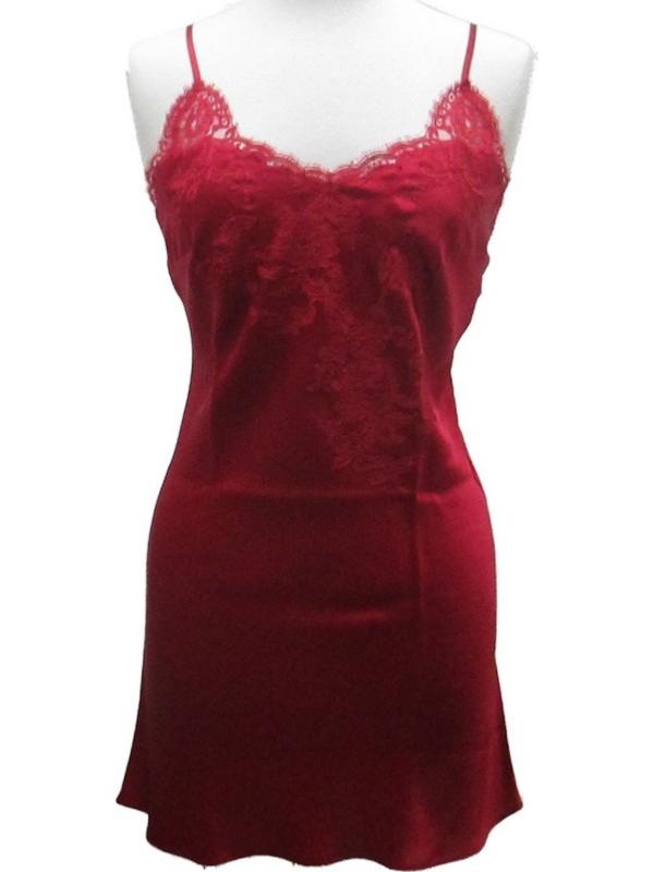 Collection "Gemma" combinette en soie unie coloris rouge et empiècement de dentelle.
