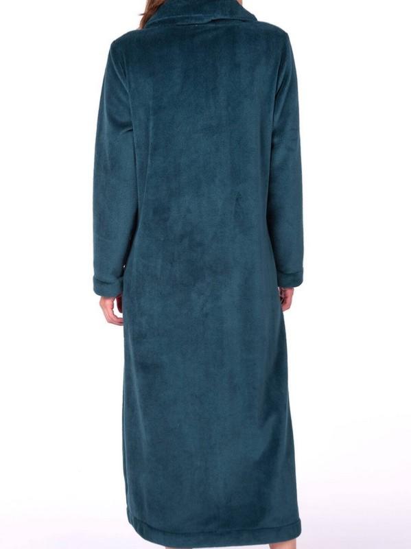 Modèle de robe de chambre longue boutonnée en tissu polaire recyclé collection Must de chez Canat.