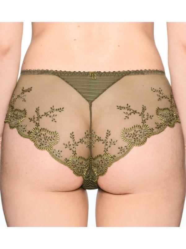 Collection "Elise" shorty en maille douce effet plissé à l'avant et tulle brodé bicolore à l'arrière, finitions sans coutures et fond doublé coton.