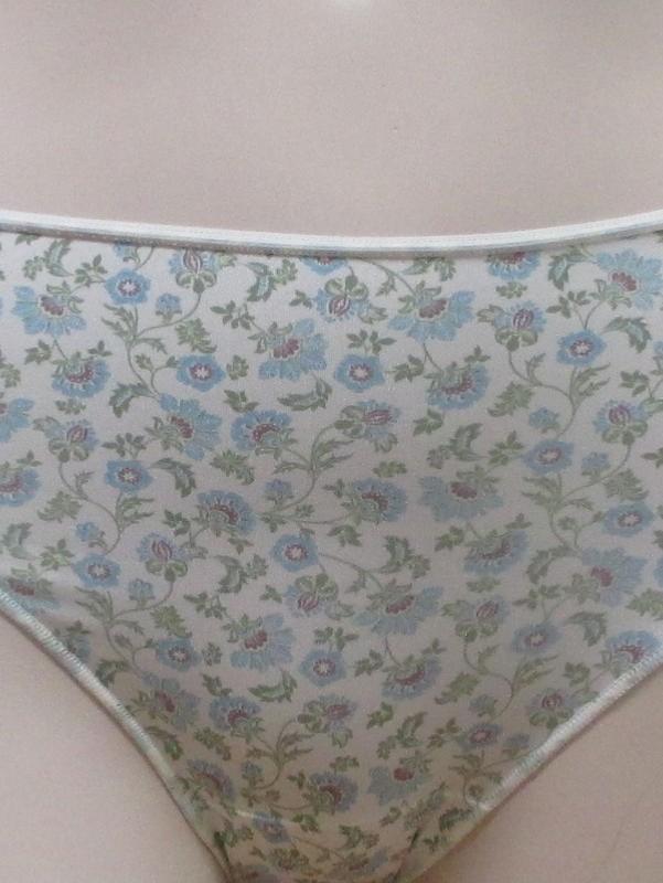 Collection "32085" lot de 2 slips en tissu polyamide imprimé de petites fleurs bleues et vertes, fine taille élastique et fond doublé de tissu éponge 100% coton.