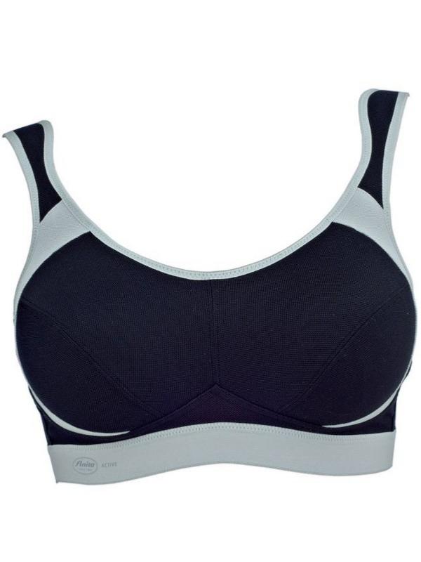 Modèle de soutien-gorge de sport de la marque de lingerie Anita sans armatures. Les bonnets sont en 3 parties avec renfort latéral pour assurer un maintien extrême en grande taille et un joli galbe de la poitrine. La combinaison des bonnets en 3 parties en tissu piqué à l'extérieur et de la doublure sans couture en matière éponge à l'intérieur permet à la poitrine de rester bien au sec. On note que le dos est travaillé en filet favorisant la respiration de la peau.